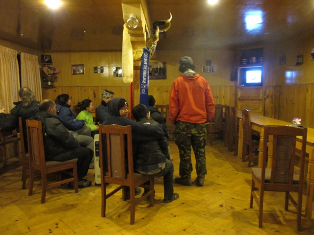 ロッジのダイニングでは、みんなでヒラリーさんのビデオ観賞会。