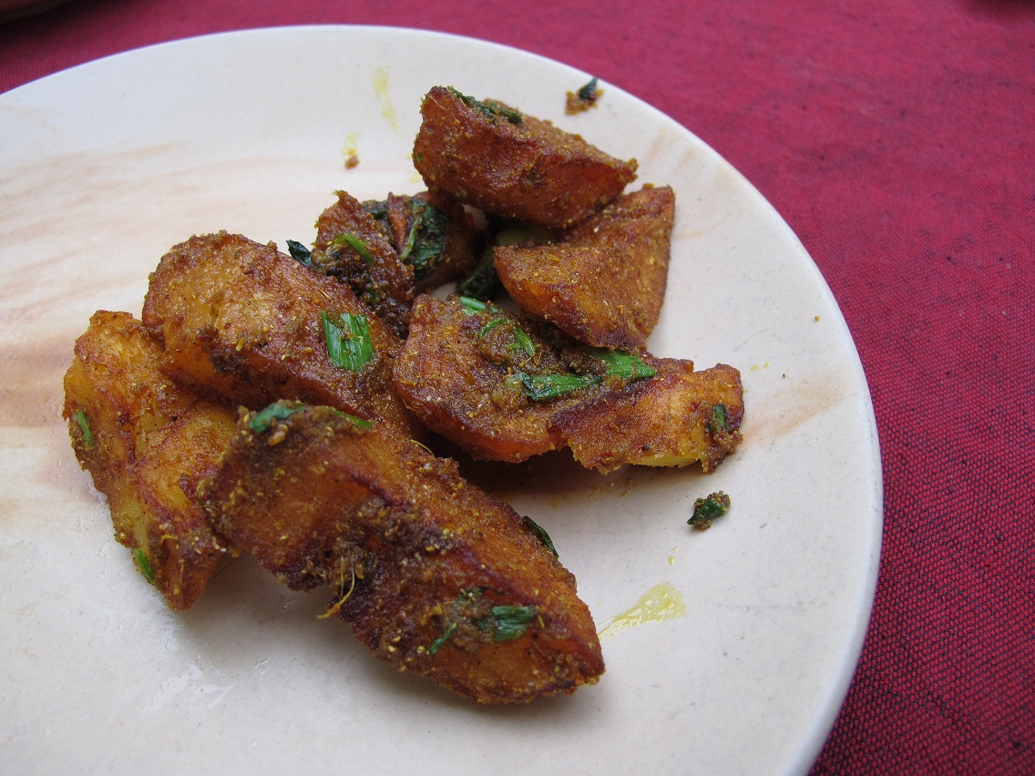 揚げたジャガイモにスパイスを和えるだけなのですが、