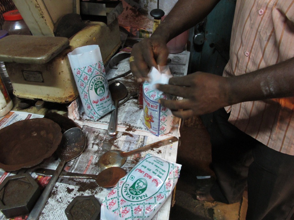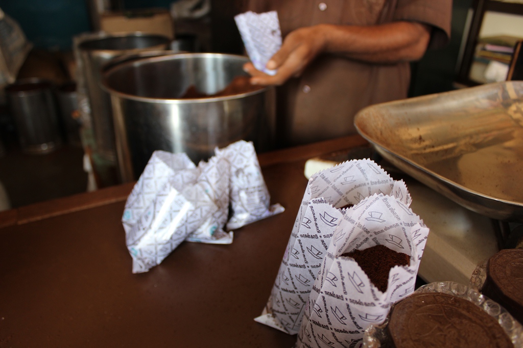 コーヒー豆もここマドゥライのコーヒー屋で買っています。