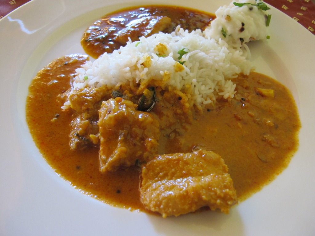 フィッシュはタマリンドをバシっと効かせ、ココナッツ感も少ない、タミルの内陸的な味わいのフィッシュカレー。