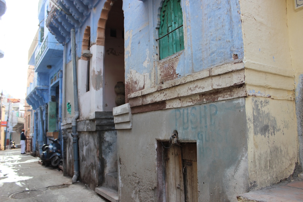 狭い路地をバイクや牛が通る雰囲気は、バラナシのベンガリートラを思い出させた。