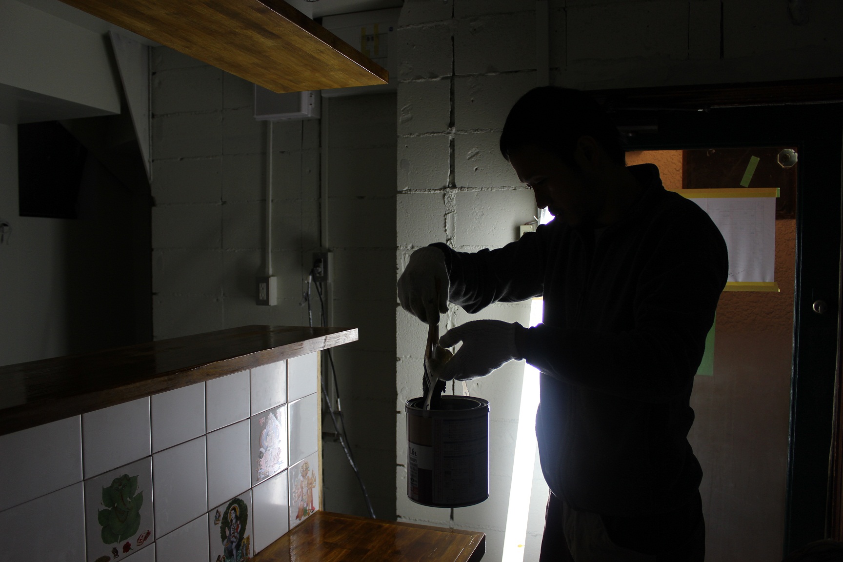 インドに行っている約1ヶ月の間は寒さ対策で店内に。