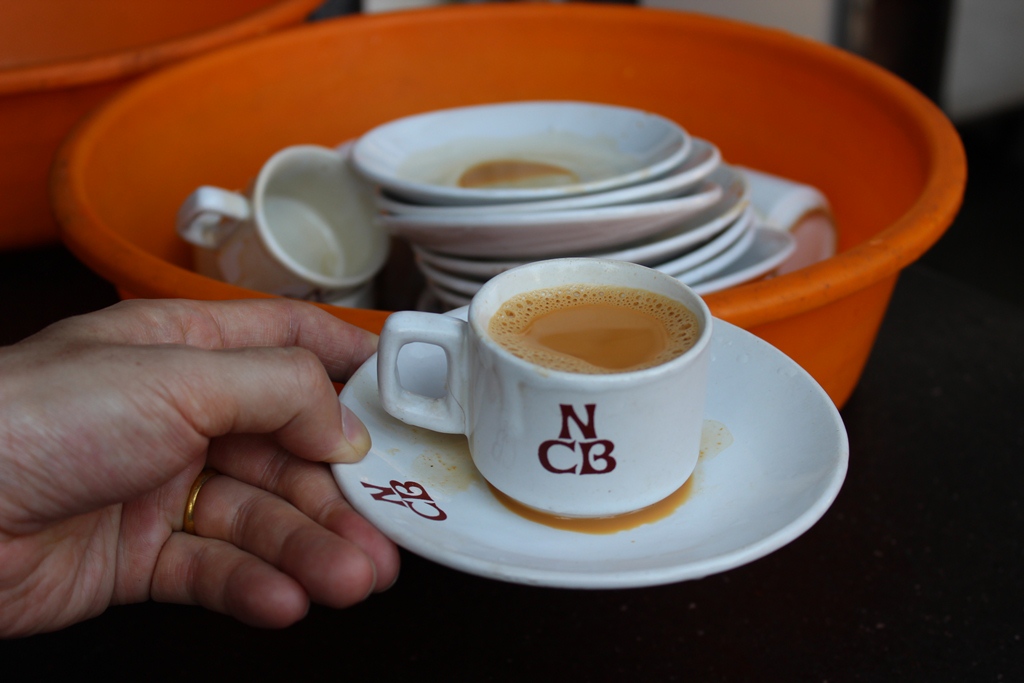作りのあまいカップとロゴとそして、いつもだいたい溢れてこぼれてるチャイのビジュアルに心が踊ります。